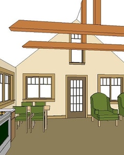 This floorplan can be easily modified since interior walls do not carry loads. At our membership sister site, PlanHelp.com, you can download a template file that will allow you to modify and reprint the floorplan and elevations to scale. These customized drawings can then be pasted back into your paper plans for submittal to the builder and building department. To use these template files you will need to purchase an inexpensive home design program. The floorplan and interior perspective drawings shown here were produced with this program.