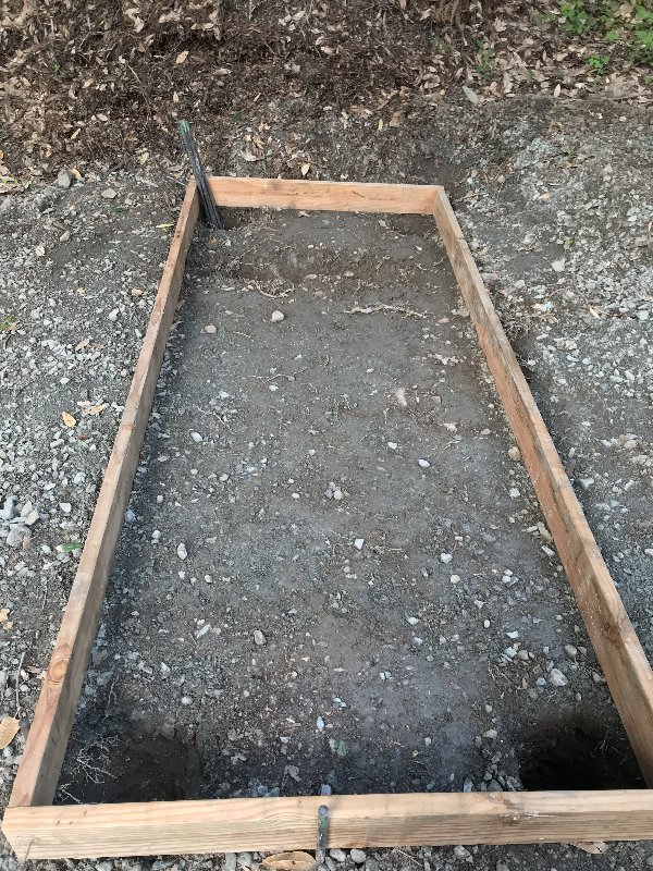 I also started digging the trench for my conduit, but that will go much easier on my next trip when I bring up my rotohammer with a spade bit. There is A LOT of rock in the soil up there. I did have one mistake that I realized at the end of the day. My pad is supposed to be 5x10 and currently it's 4x10. Won't be a huge deal to add on that extra foot and that's a result of not looking at my drawing until the end  d*