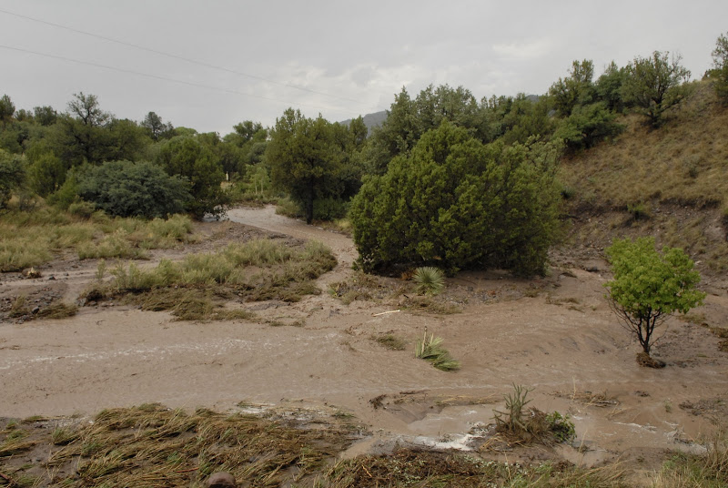 This is the arroyo that cuts through our property. Normally dry, but it runs pretty hard several times a year. About 15 minutes before I took this photo it looked like the Colorado, but I didn't want to brave the rain to get a picture.