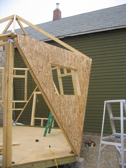 5 windows framed up.one more to go..i think the change in heights will make this part of the cabin really neat when its on site.