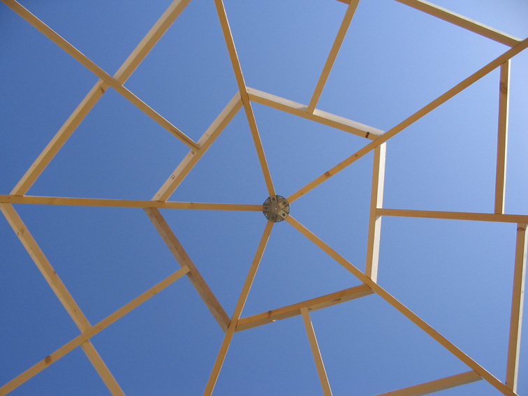 Sooo cool!  Looks like a sculpture.  I'm curious, are you figuring out all fo those funky angles mathmatically, with computer software, or just on-the-fly construction style?  Can't wait to see more.