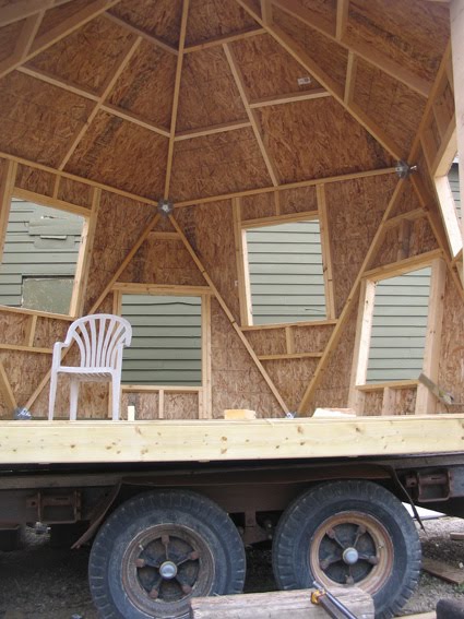 Kris I have been watching your project as you progress.  I am not familiar with that particular design and was wondering why the walls of the Icosa are not plumb.  I am sure there is a logical explanation but to me it sort of looks how should I say Odd that way.  I guess I am more of a "box" builder.