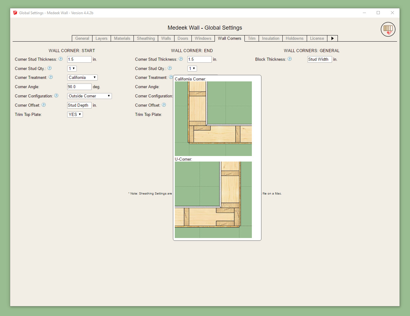 I didn't realize that the term "California Corner" was not well known in the industry.  To that end I've added a tooltip for "Corner Treatment" which shows a typical (2x6) California Corner and a U-Corner.  Hopefully this further clarifies this parameter for some users who are not familiar with this term. The other corner treatments seem fairly self explanatory.