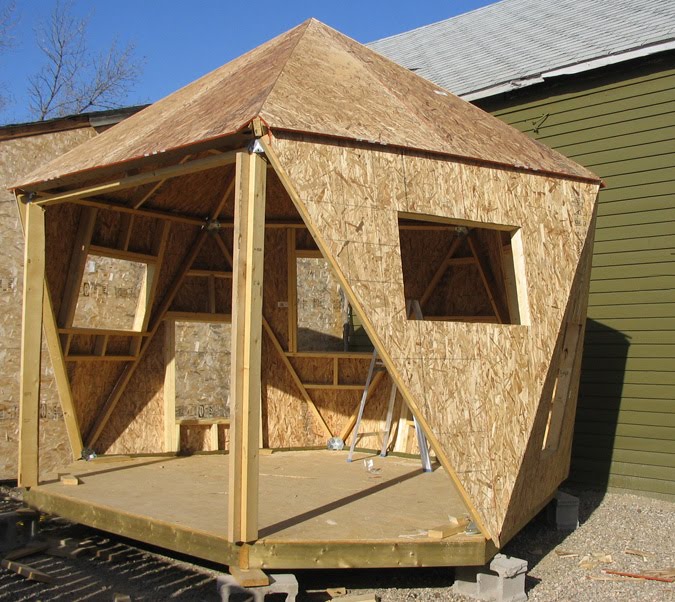 well...thanks for that..there is more to come,,,i now need to join it somehow to part 2... i am thinking of building something kinda like the "manshed", of which is posted in the forum..the join is kinda odd  since the icosa has a 8ft square opening and the attachment will be a 12 x 14 {plus roof differences}.....hmmmm.. something for me to ponder..